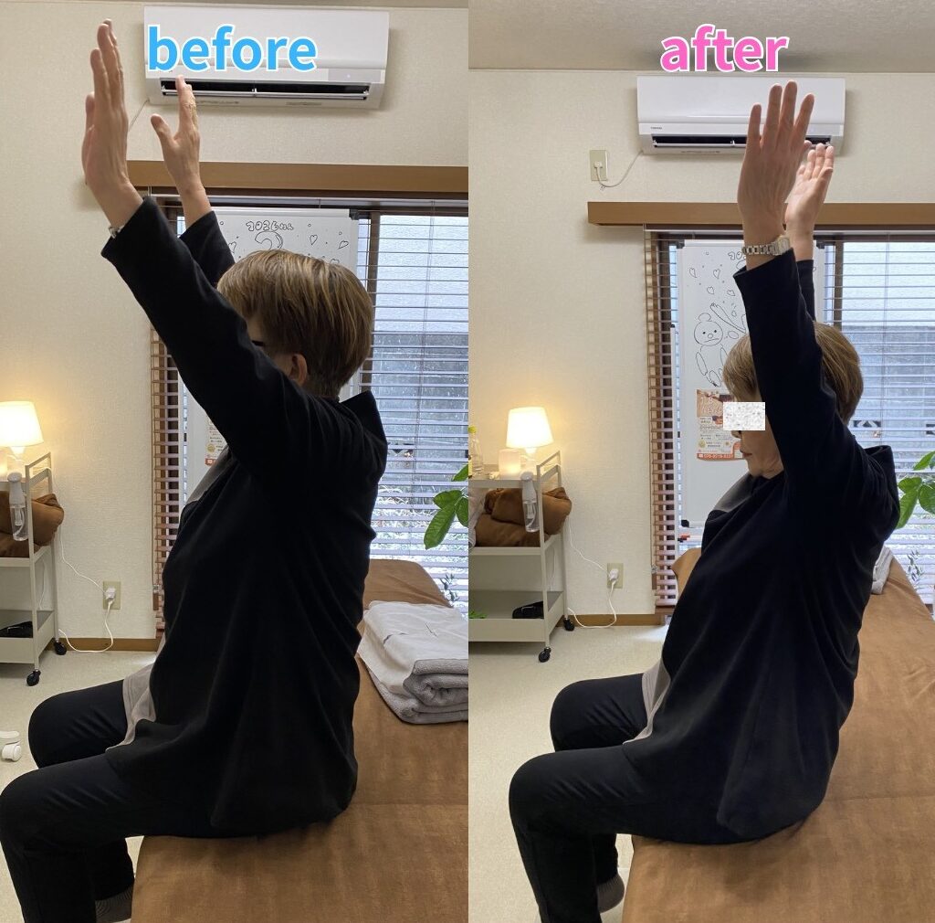 施術させていただいて3回目あたりから患側の皮膚の血色も良くなり可動域、筋力、しびれが改善してきました。
